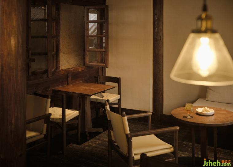 從木質階梯進入頂層,東西兩側狹長的空間,設計師沿窗開辟的散座,營造了一份屋檐下的靜謐之美,微風掠過,窗扇吱呀作響,依著窗邊而飲,觀時光翩躚。