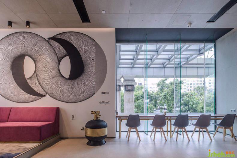 室內(nèi)設(shè)計將水吧、交流區(qū)、洽談區(qū)、會議室、共享辦公室、精品展示服務(wù)區(qū)等元素融合起來。燈光將多維生活、多重居住、共享辦公、時尚餐飲、多元活動串聯(lián)起來。公共區(qū)域內(nèi)恰到合適的暖白光奠定了空間的清新怡人,與傳統(tǒng)酒店的暖光區(qū)別分開,自然、和諧的照射燈具給屋內(nèi)增添些許生氣,舒卷自如的怡人氣氛就這樣蔓延開來。讓進入此空間的人都能感受到自在舒適。