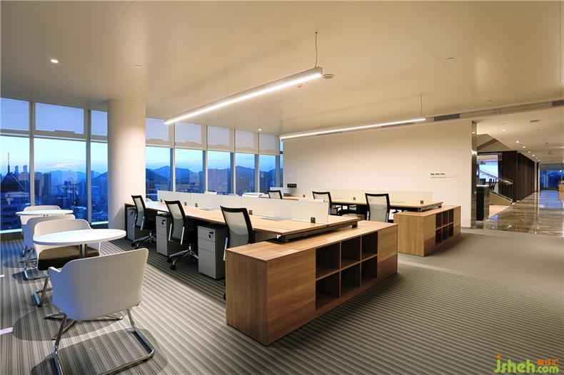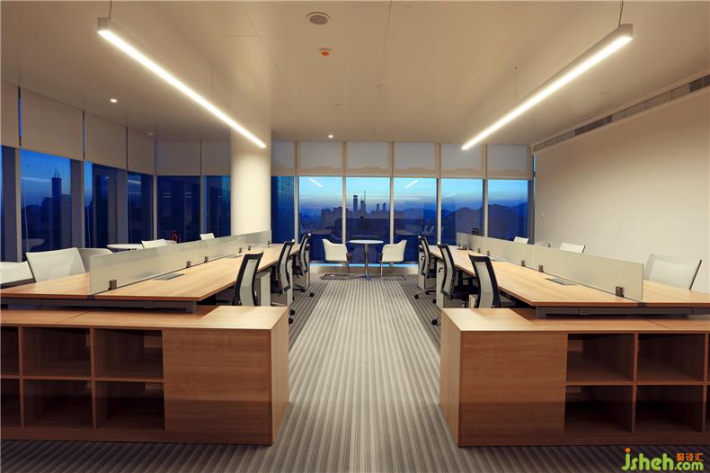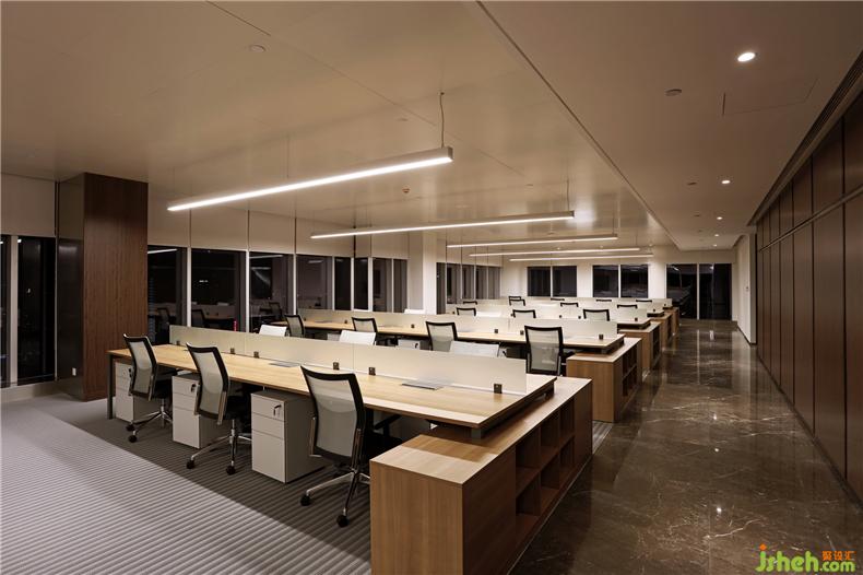 開(kāi)敞辦公區(qū)域既要讓室內(nèi)燈光符合辦公照明的基本要求,辦公室設(shè)計(jì)又想在環(huán)保節(jié)能的前提下,不落俗套。燈光設(shè)計(jì)師巧妙地利用智能窗簾與燈光互動(dòng)達(dá)到室內(nèi)光環(huán)境動(dòng)態(tài)平衡,有效運(yùn)用自然光去延伸室內(nèi)空間的光環(huán)境。條形燈,離地高度2300左右,既能滿足桌面要求,又不遮擋視線。若天花比較整潔的可以做上下發(fā)光。