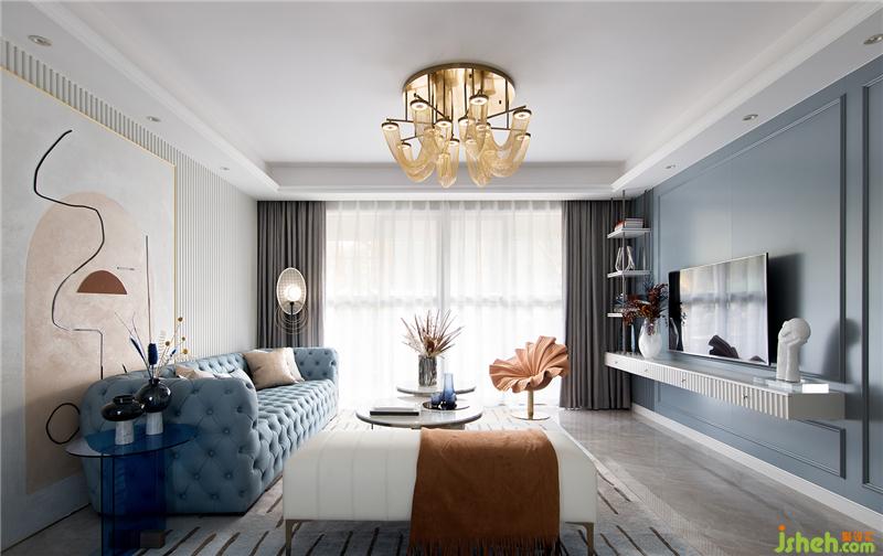 WΛMI運(yùn)用這一理念,打造了位于廣西彰泰的315㎡頂層復(fù)式住宅樣板房設(shè)計(jì)。用優(yōu)雅與精致奢華的橙藍(lán)金撞色來營造法式調(diào)性住宅的浪漫與“輕”生活慢享格調(diào)。