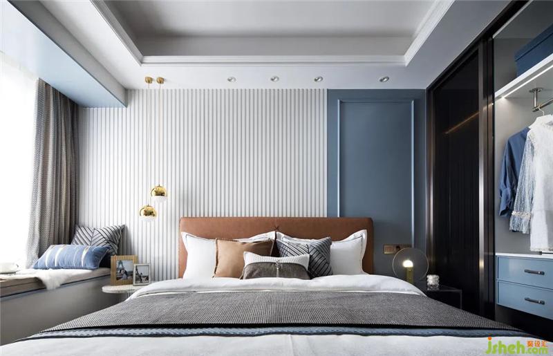 兒童房則與之沉穩(wěn)的調(diào)性相反,大膽地用藍(lán)色與粉色區(qū)分孩童空間,大面積的主墻紙簡潔易懂得把孩童的喜好表達(dá)清楚,使空間躍動又富有設(shè)計(jì)感。在兒童玩樂區(qū)域上也花了不少心思,男孩的積木墻與女孩的泡泡池,既保障了游戲的安全性也充實(shí)了空間,使它保持溫馨、跳躍。