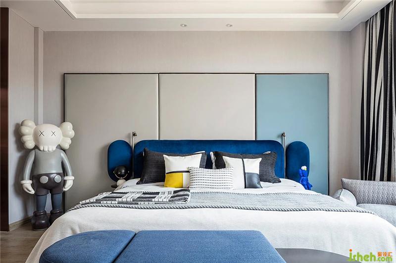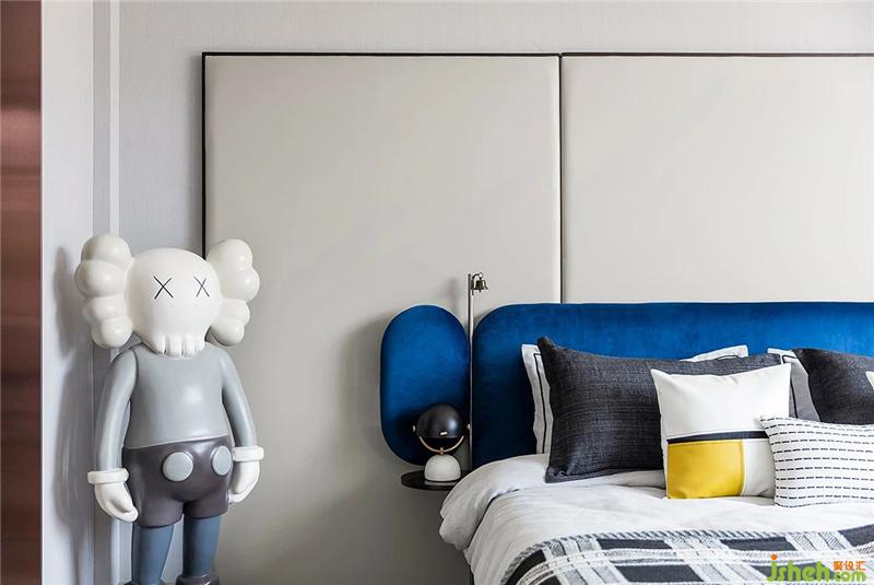 三層男孩房與戶外露臺規(guī)劃為一層,親近自然,培養(yǎng)男孩的獨立性。將大面積的光迎于室內,沉靜的藍色無溫暖的陽光相碰撞,讓理智無溫情并存。整個房間以風潮正熱的KAWS為設計元素。KAWS的情緒如兒童的一樣,沒有隱藏的與世界進行交流,做一個真實的自己也是一種潮流。