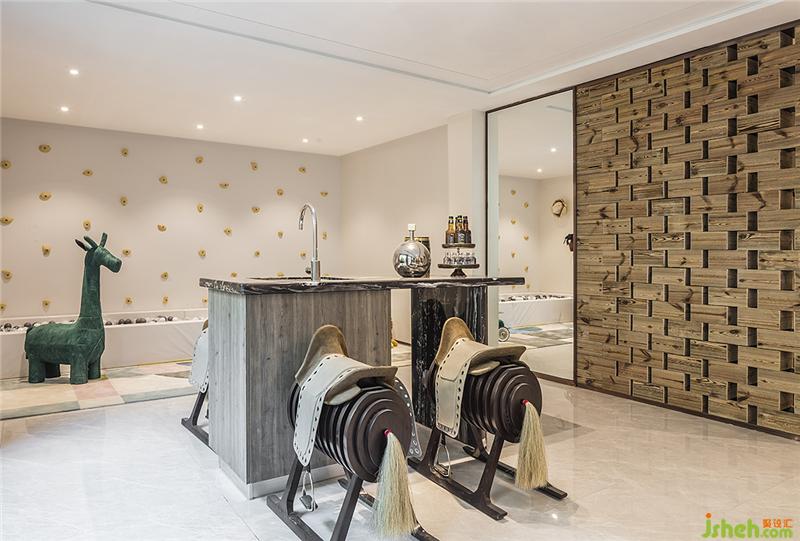 作為空間中主要的休閑類社交空間,藝術收藏、親子娛樂與酒吧舒適自然的軟裝家居的彼此互動中,產生出了于春意中縱情娛樂的家居休閑場所