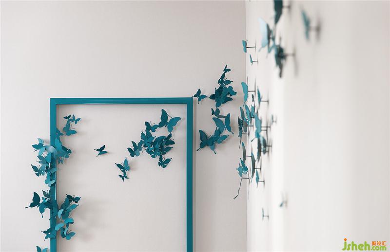 主臥屏風(fēng)帶著點(diǎn)點(diǎn)春色,煙雨初歇,留白間是“草色遙看近卻無(wú)”的意境。淺淺花草間有蝴蝶乘風(fēng)而來(lái),家具選款沉靜大氣。