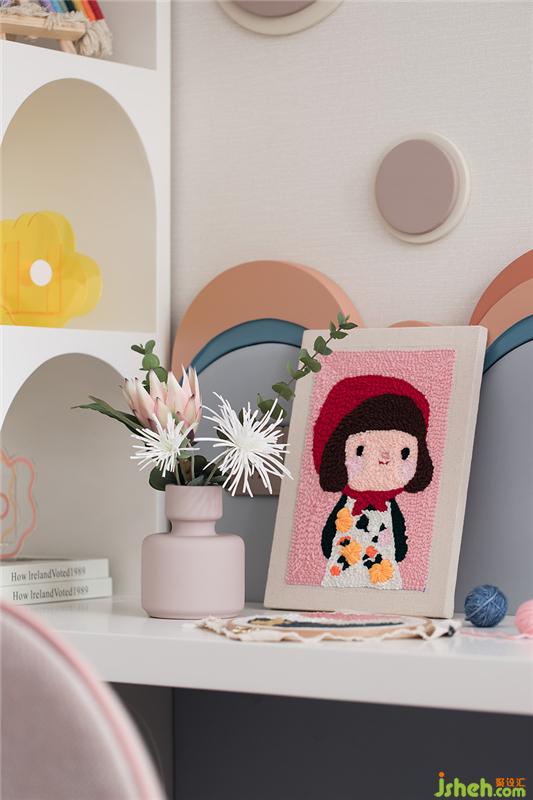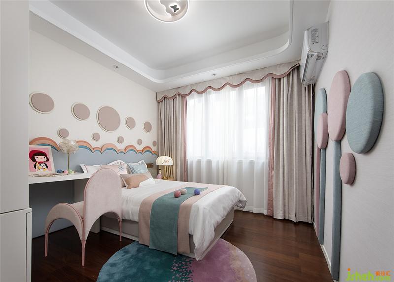 女孩房整體層次分明,選色清新?;顫姷拇脖炽暯又習溃炜臻g尺度,統(tǒng)一秩序感。