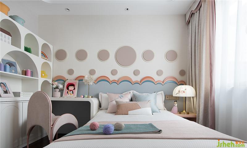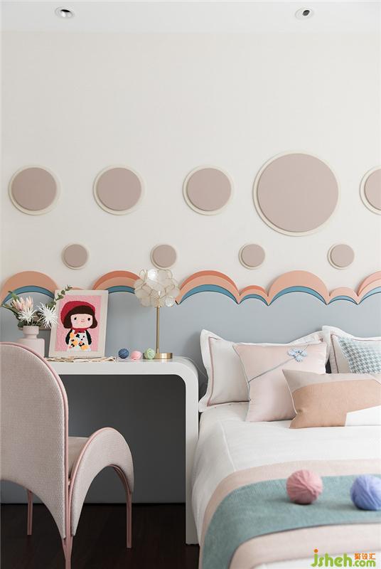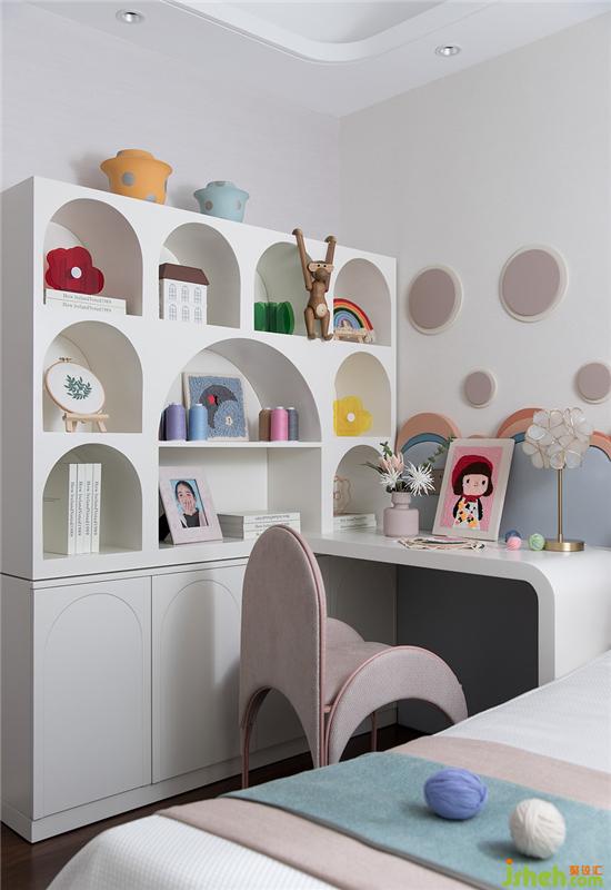 家具弧線造型相互呼應,相輔相成。給小孩打造一個清新豐富的臥室空間。