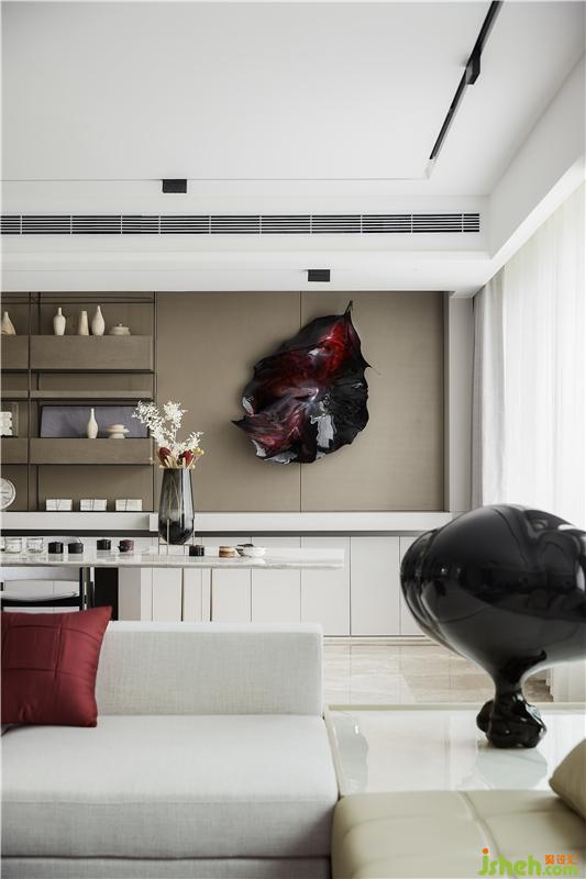 通透明亮自然的帶入充盈整個(gè)空間,軟裝從使用者自身的感受與品位出發(fā),在淺色的背景之中點(diǎn)綴些許的BossaNova 帕莎諾瓦紅,而精選的皮革、大理石和漆藝藝術(shù)品歷經(jīng)繁復(fù)的篩選。都成為了空間與日常生活的關(guān)聯(lián)之處,大漆藝術(shù)品則以藝術(shù)的審美視角詮釋家的氣質(zhì)與涵養(yǎng)。