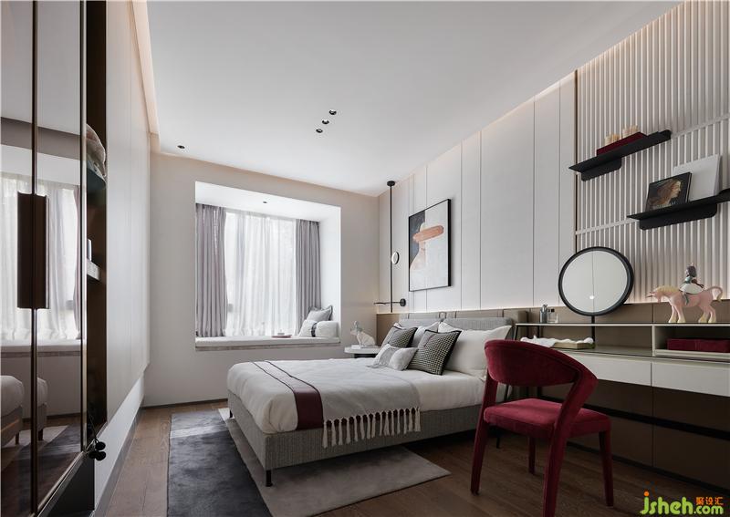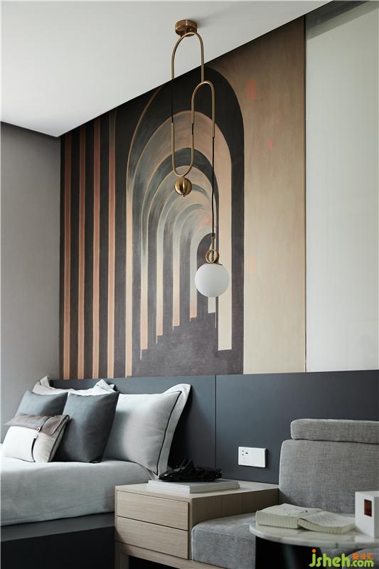 我們盡量在利用空間達(dá)到實用和美觀的統(tǒng)一。比如床與書桌組合的一體化設(shè)計,充滿線條感的油畫,潮玩始祖Be@rbrick單品的點綴,傳統(tǒng)與潮流以藝術(shù)手法新生共融,凸顯了當(dāng)代人對藝術(shù)的無限想象與個性的極致追求。