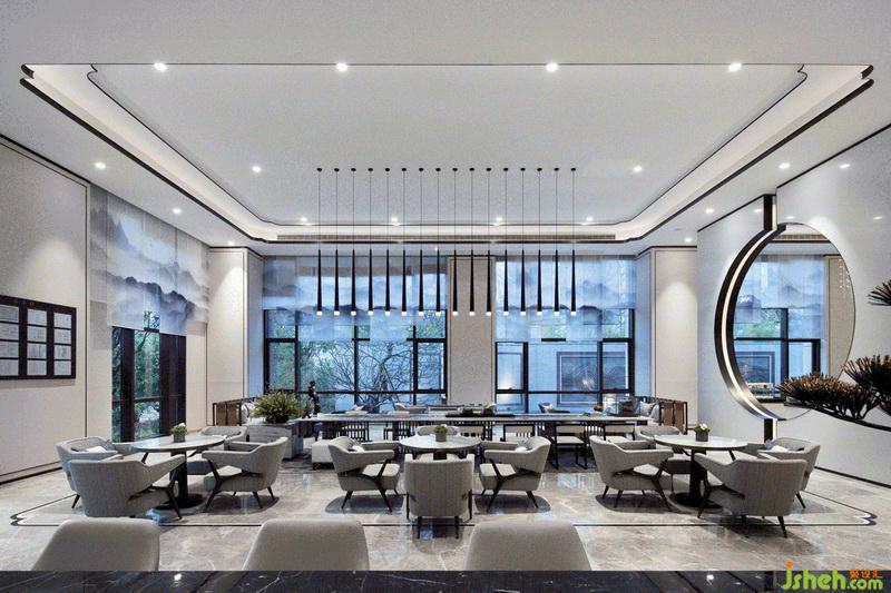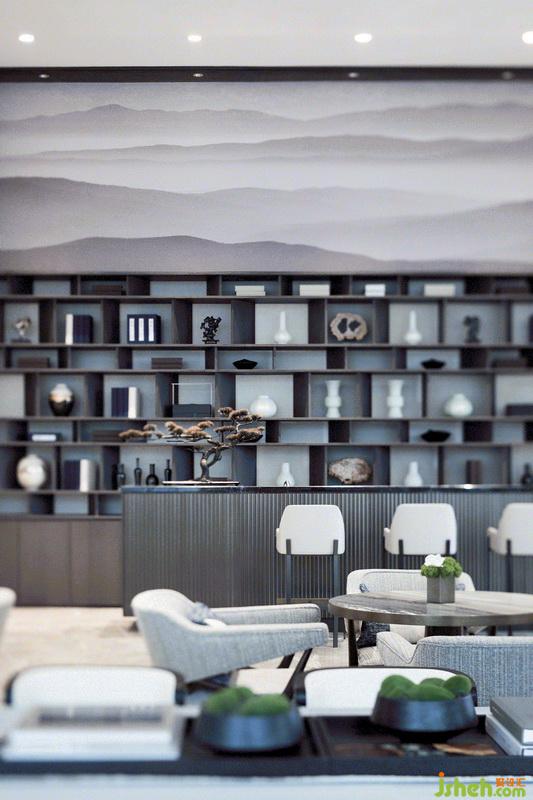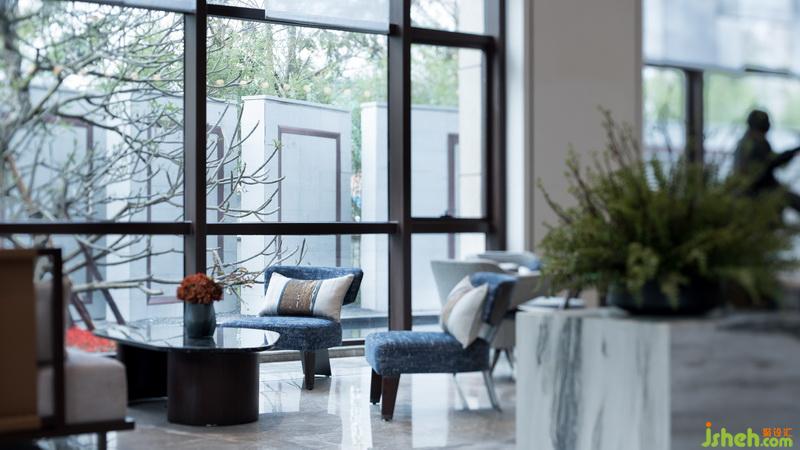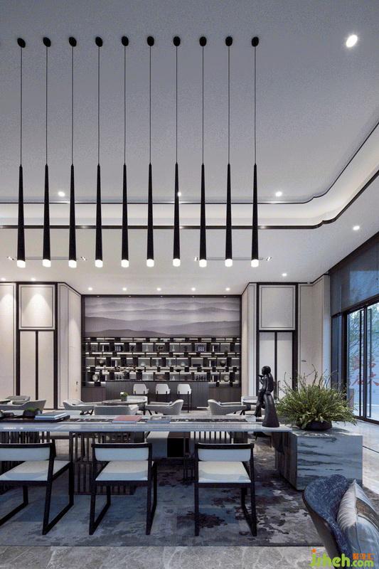 洽談區(qū)整體呈開(kāi)放式的空間布局,卻又具有各自獨(dú)立區(qū)域,室內(nèi)設(shè)計(jì)師保留現(xiàn)代設(shè)計(jì)感,將濃郁的東方風(fēng)韻潛移默化地融入設(shè)計(jì)之中,加以落地玻璃的借景手法,開(kāi)闊平坦的絕佳視野,一石,一樹(shù),一紗,虛實(shí)寫(xiě)意,可謂:“不知城市有山林,謝公丘壑應(yīng)無(wú)負(fù)”。