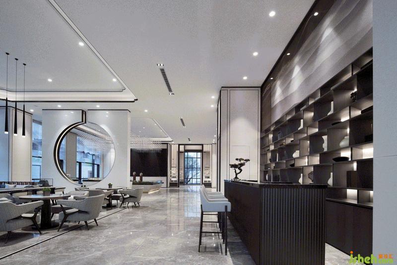 漫步至水吧區(qū),結(jié)合“看山不是山,看山仍是山”的佛學(xué)理念,融入宋代毓秀之美,采用木飾面柵格的溫潤(rùn)清雅與吧椅圓滑的弧線轉(zhuǎn)角,與天頂?shù)臒艄庑纬勺匀坏膶?duì)望呼應(yīng),用簡(jiǎn)單自然的寫(xiě)實(shí)手法渲染自然東方的意境。