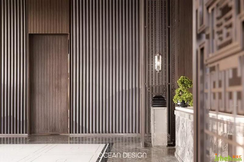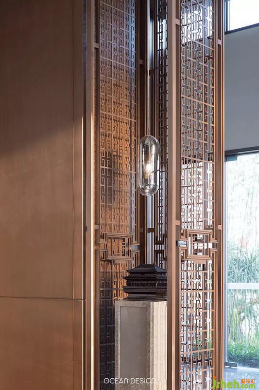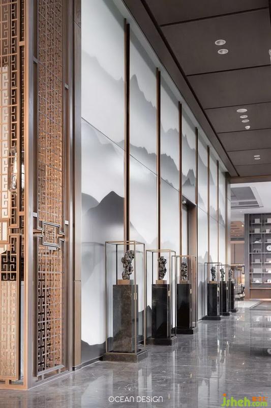 于是,設(shè)計(jì)師以追尋歷史文化為出發(fā)點(diǎn),借用水紋、山巒等元素和筆墨演繹山河脈絡(luò),將大地之美和人文特色融入當(dāng)代美學(xué),通過現(xiàn)代手法來演繹空間的韻味,熟練將留白、光影等手法,讓觀者在參觀時(shí)感受到遞進(jìn)式的尊貴感。