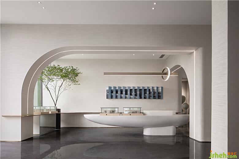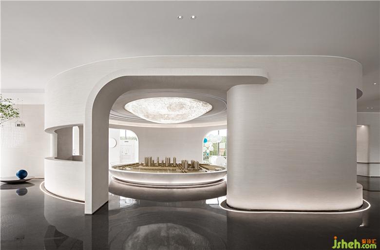 售樓處設(shè)計(jì)曲線在空間的運(yùn)作,打破對(duì)稱、端正的規(guī)律,舒緩的旋律與輕柔的擺動(dòng)相互契合,動(dòng)感活潑的韻律美悄然而生。跟隨設(shè)定的場(chǎng)景,人們移步景移成為了空間的主角,懷揣著美好的憧憬,邁步未來的探索。