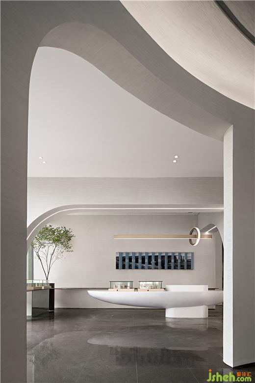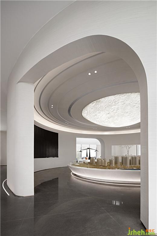 設(shè)計(jì)師創(chuàng)造性地將宇宙的斗轉(zhuǎn)星移幻化入空間之中,隨著人們的走動(dòng),頗有踏月神行的輕盈感。整個(gè)空間沒有多余的裝飾,光影在有限的空間里投射出無限的闊度,于在室外面看,在室內(nèi)其中,在方寸之間,都可獲得震撼心靈的觀感體驗(yàn)。