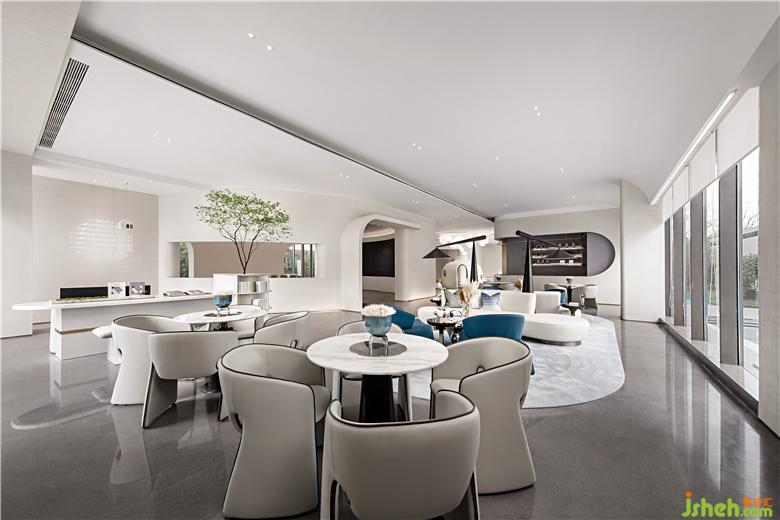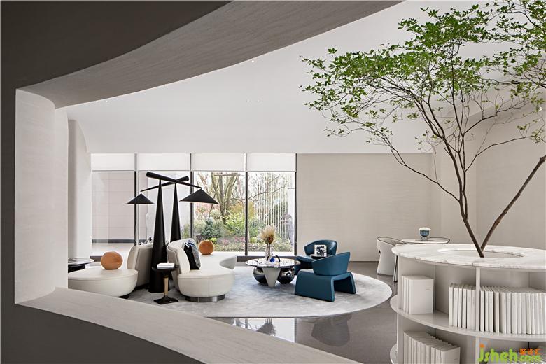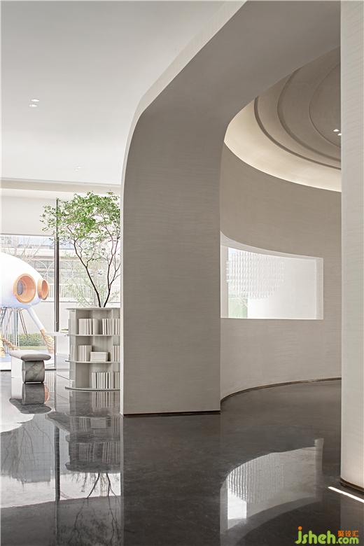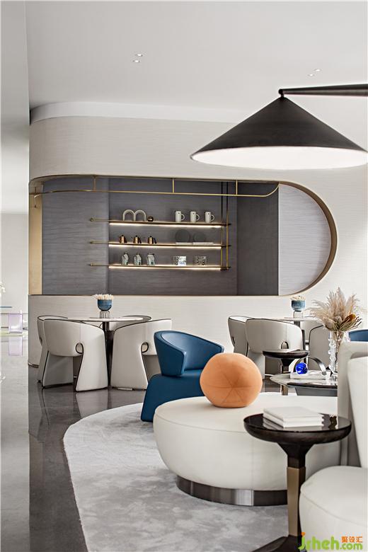 深入空間,設(shè)計師延續(xù)星空的設(shè)計,強(qiáng)調(diào)角色的專屬性帶入場景。在色彩上崇尚簡潔,以“曲線”的自由和灑脫,勾勒新生代的活力與光彩,點點柔和的燈光相互交映,散射著柔和的氣氛,精致的空間倍感靜謐。