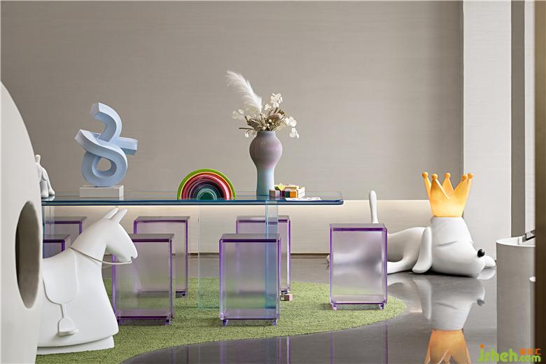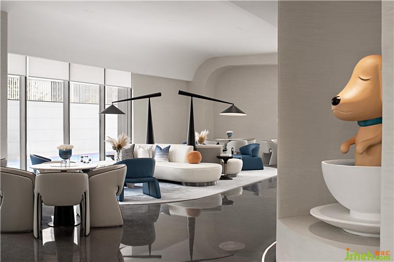 售樓處設(shè)計安放各種充滿想象的藝術(shù)品散落于各處,打破空間稍顯商業(yè)氣息的固有印象,通過人與物體的互動,觸動內(nèi)心的情愫,讓城市人居的日常生活和對未來式的體驗得以表達(dá)。