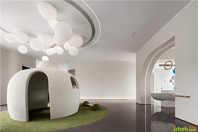 當(dāng)來訪者的目光在室內(nèi)序列空間游移時,依次亮起的氣球藝術(shù)裝置將與一起互動,幻化出一場震撼的視聽盛宴化作觸感,猶如置身在靜寥悠然的宇宙仙境中,大氣舒展,妙趣橫生。