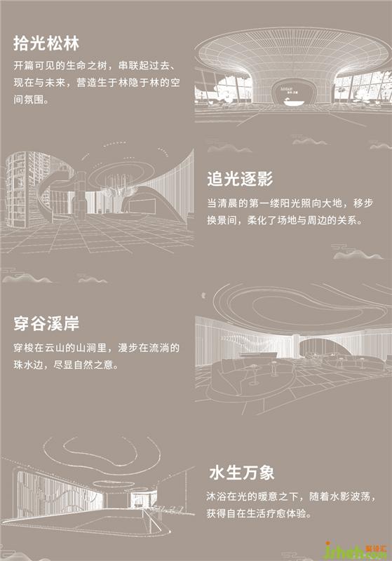 設(shè)計(jì)試圖通過對(duì)自然形態(tài)重新拆解、抽象和再定義,在光的相遇,云的漫不經(jīng)心,水的靈動(dòng),樹的溫潤(rùn),將室內(nèi)室外的邊界打破,建造人居生活的詩與遠(yuǎn)方。