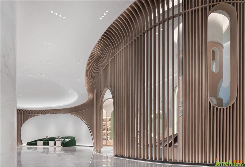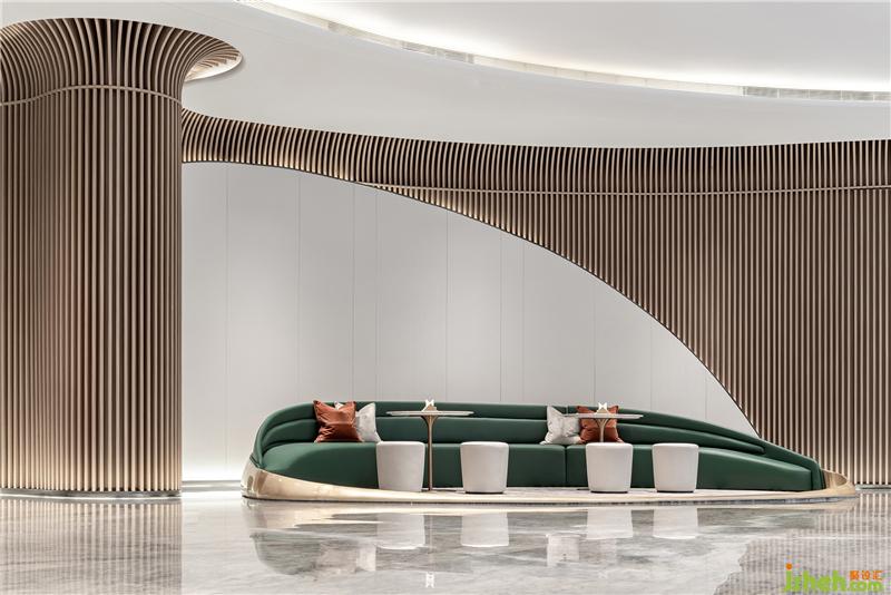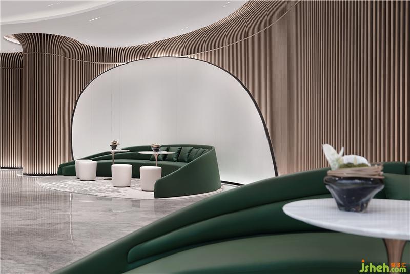 素雅簡潔的線條,仿佛處于流淌的光影下,讓人保持一種更加弛和平靜的狀態(tài)廣州售樓處設(shè)計。
