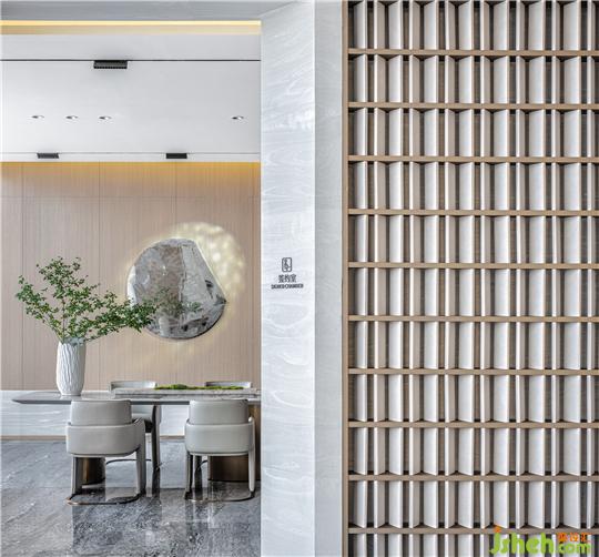 以熒熒的豎狀星光作為點睛之筆,在木色的環(huán)抱中置入特殊工藝的藝術陳設,恰到好處地表露出未來社交的內蘊與美學風度。