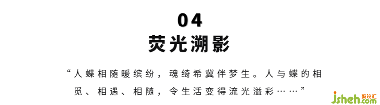 藝術創(chuàng)作需要豐富的想象力與創(chuàng)造力,基于功能性和唯美度的規(guī)劃,以“幻影”抽離現(xiàn)實,以“視覺”表達感知,在靜謐的空間中,安放其中的靈動蝴蝶,恣意穿梭空間各處,仿佛在空間里營造出一種人與自然和諧共處的時空情緒。