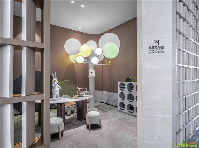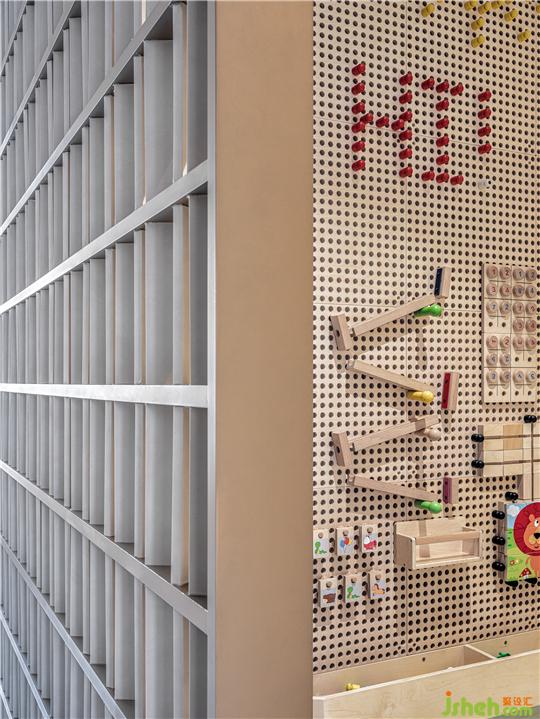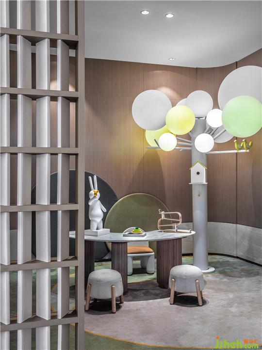 光影塑造的綠植與幾何形態(tài),建立起一片獨特且自然的兒童世界。童話的元素恰如其分地呈現(xiàn),反復運用自然柔和色彩,在活躍的空間氛圍下,等著駐足的靈蝶,讓有趣的事物都自然而然地發(fā)生。