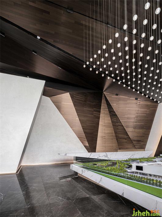 模型區(qū)以充滿秩序感的粒狀吊頂引入光線,鱗次櫛比又連綿起伏,如山脈上的浩瀚星辰,從中漫射的光影讓空間視野極具延展力。