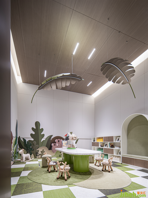 從材質(zhì)與藝術(shù)品的陳列,售樓部設(shè)計在制造互動式體驗節(jié)點上,自然糅合了當代的舒適自由的格調(diào),一如為孩童搭建的野趣花園,玩樂無窮。