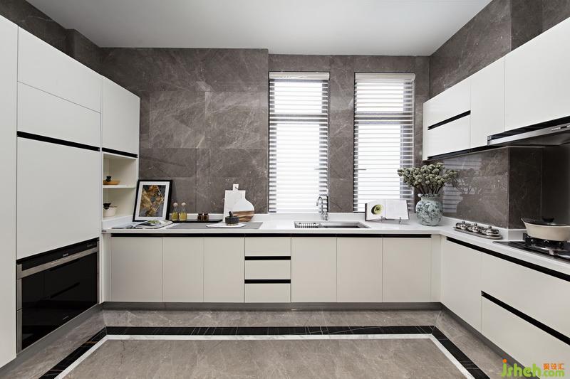 移步廚房。淡雅的白色成為統(tǒng)領(lǐng)空間的主體色,流暢的黑色線條成了廚房中驚鴻一瞥的點(diǎn)綴。所有功能區(qū)按合理的編排一字形排開,高級定制柜體劃分錯(cuò)落有致,使得現(xiàn)代風(fēng)格的生活美學(xué)在空間中充分發(fā)酵,與其他空間產(chǎn)生一種奇妙對比的化學(xué)反應(yīng)。