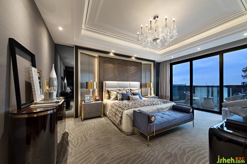 拾階而上,三樓是別具現(xiàn)代輕奢感的主臥。設(shè)計(jì)風(fēng)格延續(xù)了“港式格調(diào)”的線條感,淺灰色的低調(diào)、米色的柔和,在看似簡潔質(zhì)樸的外表下隱藏著低調(diào)的貴氣感,營造出舒適愜意的睡眠環(huán)境。室內(nèi)設(shè)計(jì)師在這里采用了透明玻璃的落地窗設(shè)計(jì),不僅增加空間亮度,而且引景入室。抬眼間,山、海、林、日等自然美景躍入眼簾,蕩滌心胸。