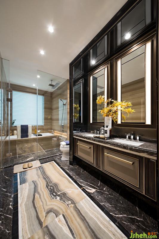港式風(fēng)格最為注重生活品質(zhì)的體現(xiàn),主浴的地板選用紫灰色的雅致英倫玉石,與金屬材質(zhì)的墻體碰撞出強(qiáng)烈的現(xiàn)代感,在視覺上既恬逸又時(shí)尚。