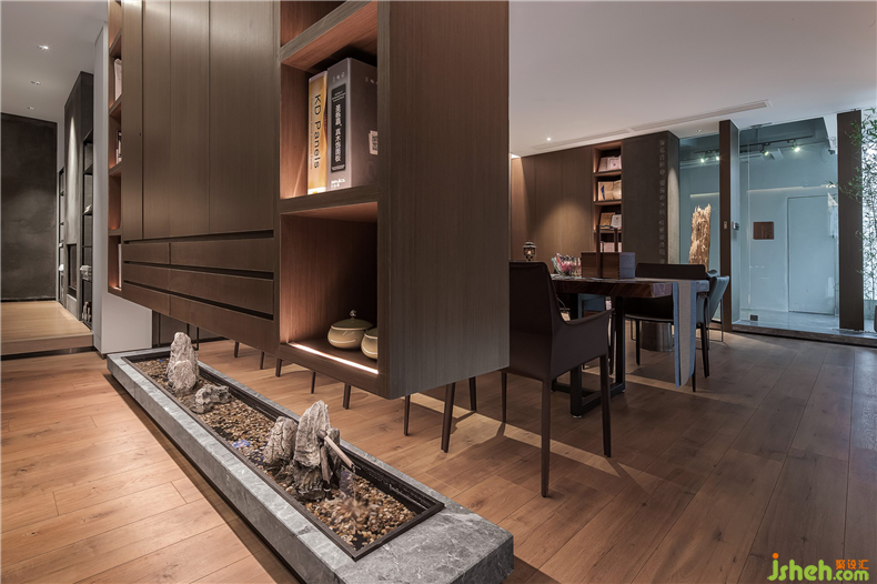 至轉(zhuǎn)彎處,潺潺流水,叮咚作響,溫暖柔和的光影附著在空間中,賦予空間極大的生命力與生動(dòng)性,以禪意、自然與和諧為主題的蘊(yùn)意,秘境深邃,養(yǎng)育整個(gè)空間靈性,仿在崇山峻嶺里,竹林一隅中,一線清泉叮咚聲在林中回響。