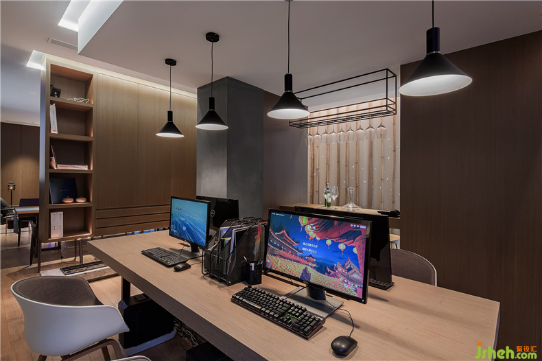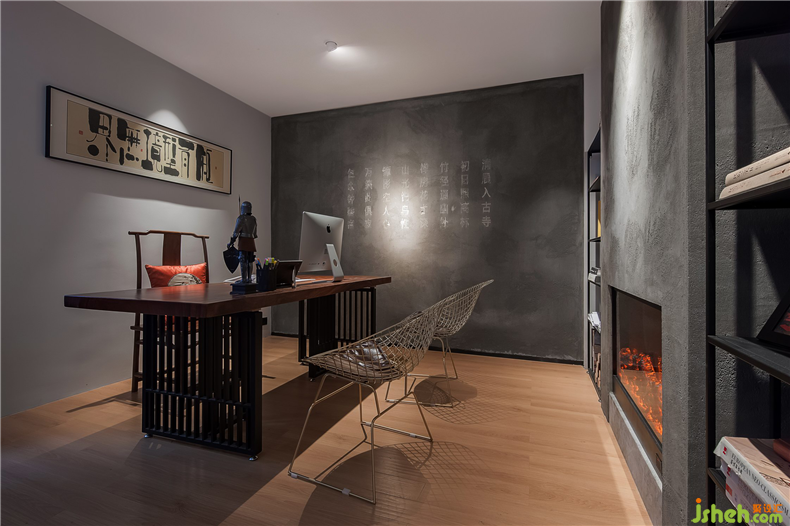 行者至此,才至禪室,安心落座。此空間是深圳設(shè)計(jì)公司設(shè)計(jì)師對工作承諾與交付的地方,墻壁上以傳統(tǒng)雕刻技藝形式將唐詩《題破山寺后禪院》刻于墻面,與休息區(qū)墻壁上的《送靈澈上人》前后照應(yīng),意為聚散有時(shí),善始善終。