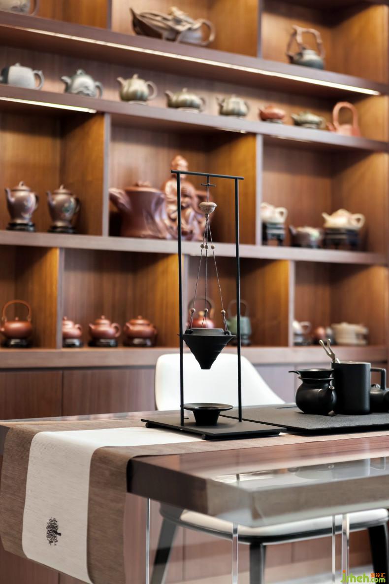 日出而作、日落而息,品茗之人都有一種超越世俗而積極的生活態(tài)度,他們享受自然,在飲茶之間凈化心靈,與天地萬物融為一體。室內(nèi)設計師對于茶皿器具這些富有靈性的禪意之物,同樣希望擁有一方天地,滿足文人生活的雅致與禪悅之風。