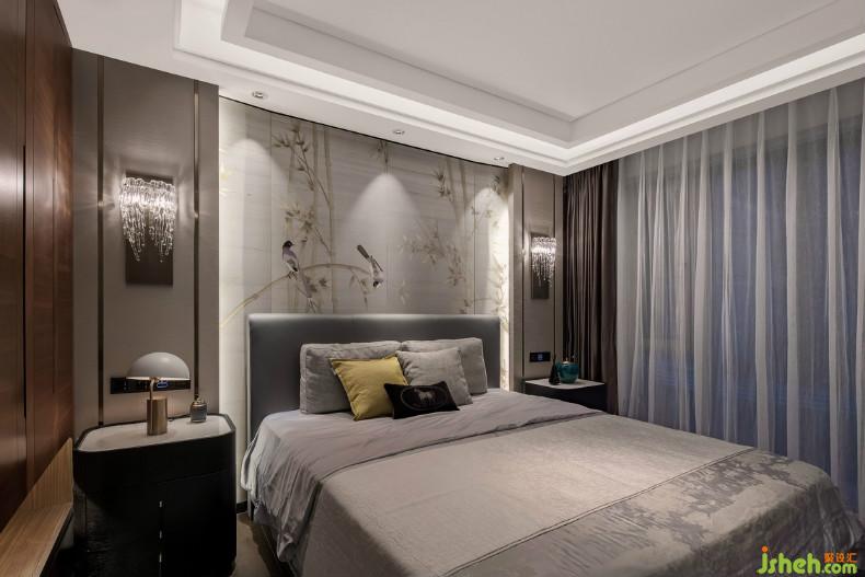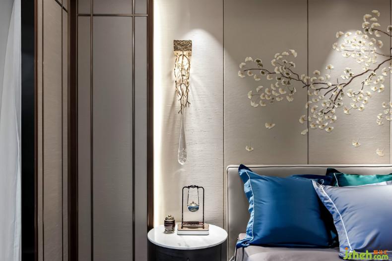 臥室的素雅和順來自軟裝配飾之間的和諧默契,沒有刻意的強調(diào)設計感。落地窗外的自然景觀折射入內(nèi),與室內(nèi)水滴狀壁燈、壁紙的銀杏花香所營造的自然氛圍遙相輝映。不難發(fā)現(xiàn),空間在塑造人文精神內(nèi)涵下,各個空間的裝飾藝術(shù)品的造型、形態(tài)、細節(jié)都傳達著尊崇自然的哲學思想。