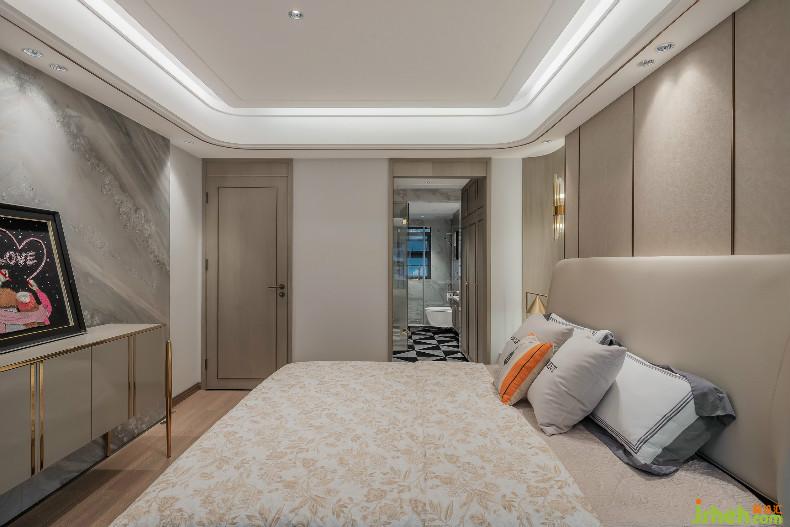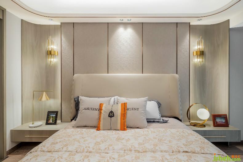 臥室設計邏輯源自傳統(tǒng)美學中的對稱,寥寥幾筆,素雅淡然,木質與金屬的搭配,室內設計師使空間充滿了現(xiàn)代藝術美感,極簡的線條組合又格外干練,獨特的弧形墻面與柔軟材質,如同懷抱,溫柔地守護著這份安寧。