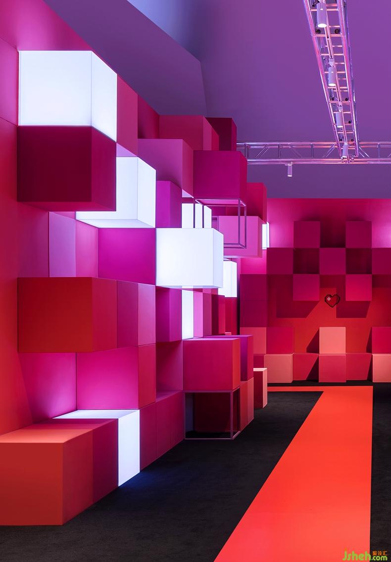在現(xiàn)實中搬運各種“像素”,需要應對隨時出現(xiàn)的現(xiàn)場狀況,當擺放組合和設計圖出現(xiàn)誤差,就需要臨時調整,反而產(chǎn)生了很多靈感,有很多很特別的角落像一些特意疊成心形,都是臨時性展會布展過程的趣味所在。