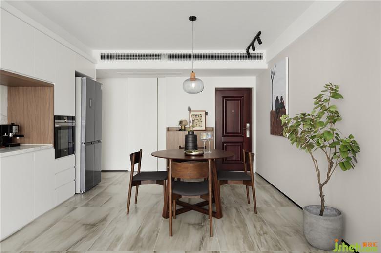 對(duì)于小戶型空間的視覺效果,開放無疑是一個(gè)最合適的詞語。在石材上設(shè)計(jì)一組強(qiáng)大的柜體,為客廳、餐廳及廚房提供更加完整的功能。