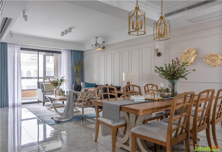 在設(shè)計(jì)溝通伊始,女主就明確表達(dá)了訴求——希望家里能呈現(xiàn)美式的輕松舒適和法式的浪漫輕奢。因此室內(nèi)設(shè)計(jì)師摒棄了繁瑣和沉重,選擇了體量上較為纖薄、造型弧度更柔和的家具款式,弱化傳統(tǒng)美式的厚重感。