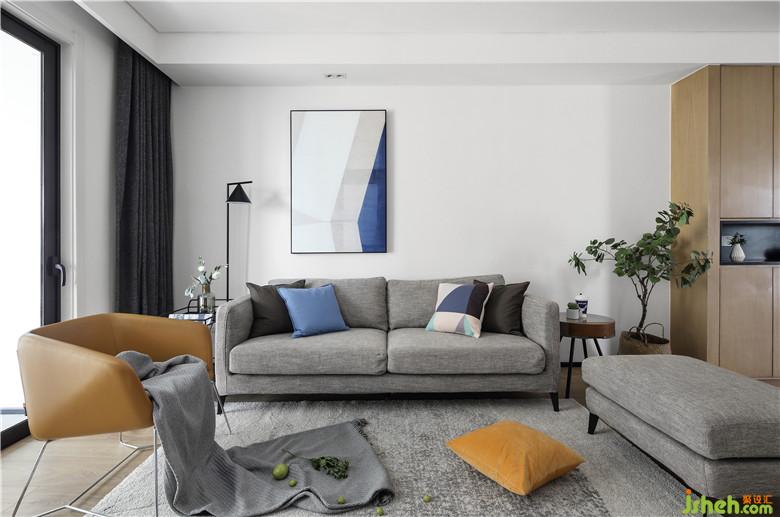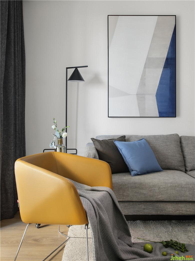 簡(jiǎn)的表象之下隱藏著別味的設(shè)計(jì)感。姜黃色皮質(zhì)單椅豐富了客廳區(qū)域的設(shè)計(jì)語(yǔ)言,與沙發(fā)抱枕和裝飾畫(huà)中的藍(lán)色,在視覺(jué)上營(yíng)造了極具時(shí)尚沖擊的空間色彩。