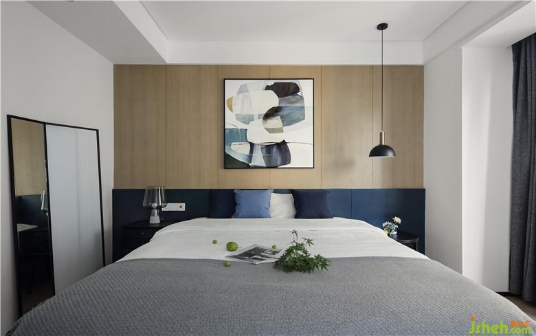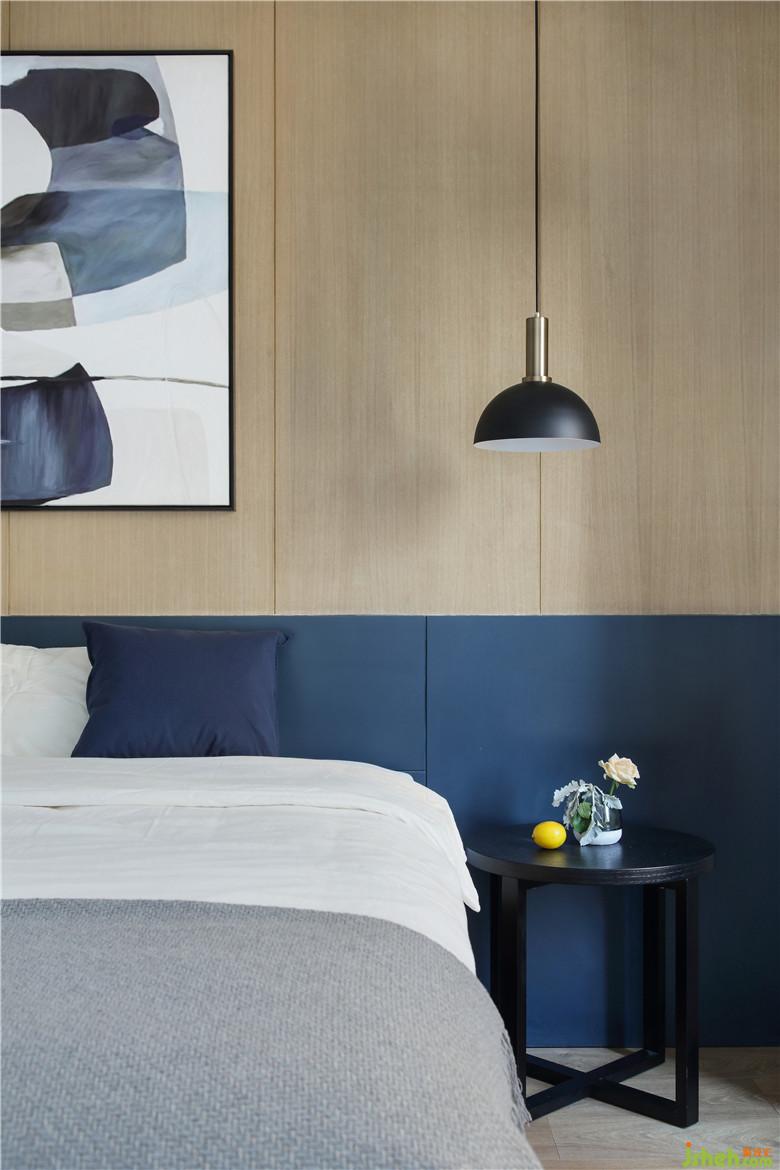 室內(nèi)設計師用醇厚的藍色有著深邃內(nèi)斂的質感,與輕松自然木質的相遇結合,衍生出生活的暖意。抽象色塊暈染、滲化,與家居用品一一呼應,虛實結合的手法延展了空間視線,也將室內(nèi)層次更為豐富地呈現(xiàn)出來。