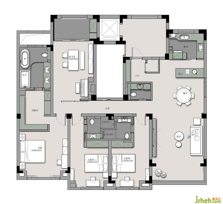 每個(gè)房間都設(shè)計(jì)成配備獨(dú)立衛(wèi)生間的套房,讓家庭小成員也能擁有各自的私密空間。