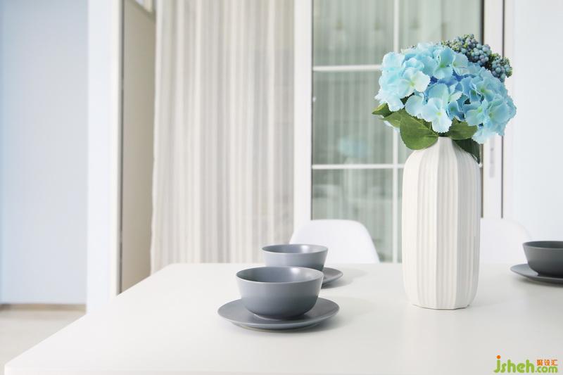 淡藍(lán)色的花束替代了一堆瓶瓶罐罐的雜物