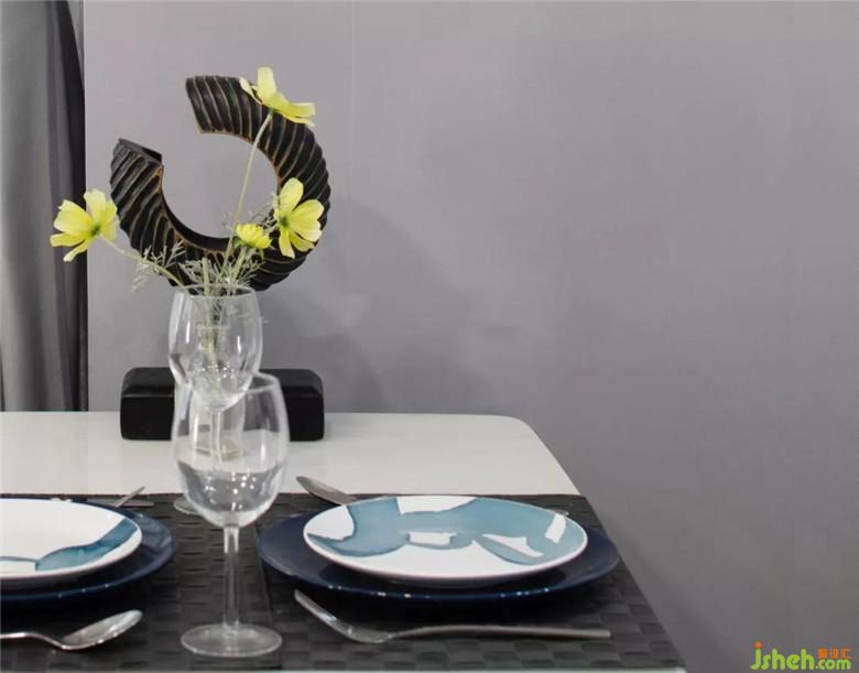 由于業(yè)主喜歡簡單干練的家,設計師以黑白色為主基調,并沒有過多過雜的裝飾,給人壹種清爽自在的感覺。適當點綴亮色的陳設品,增加溫馨感。