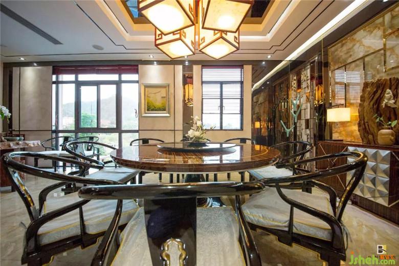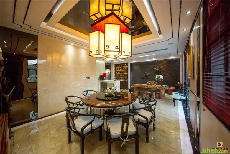 餐廳里懸垂而下的古色生香的吊燈,映出觥籌交錯的倒影,透亮的大理石地面與頂上的黑鏡鋼相映成趣,似在推杯換盞中訴說著心情,耳畔也似傳來福壽雙鶴的祝語,守護(hù)著一家歡喜。