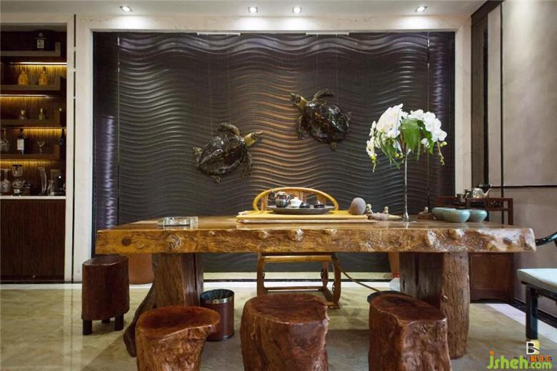 走過紋樣細(xì)膩的一角,正廳中央的紋路似蒼勁的書法,在輕薄的絹面上翻飛,這些“墨跡”泛著久遠(yuǎn)的意蘊,散發(fā)出攝人心魄、無法抗拒的美,一壺清茶靜佇,仿佛已等了許久,而此處更像極了心的故鄉(xiāng)。