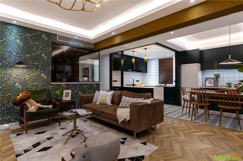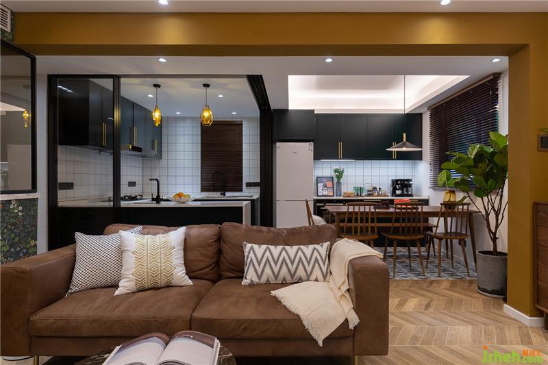 將原始戶型中客廳和次臥之間的墻體打通,做成L(客)D(餐)K(廚)一體,就餐區(qū)就位于沙發(fā)后方。室內(nèi)設(shè)計師