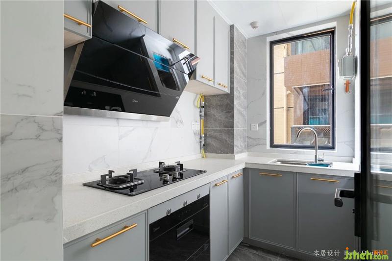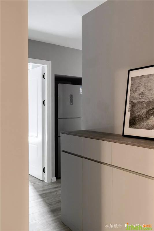 廚房面積太小,沒有放置冰箱的位置。利用原戶型的房間入門處,進(jìn)行局部的墻體改造,改變房間的入門位置,將冰箱移至原入門處。室內(nèi)設(shè)計(jì)師
