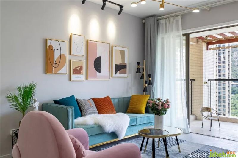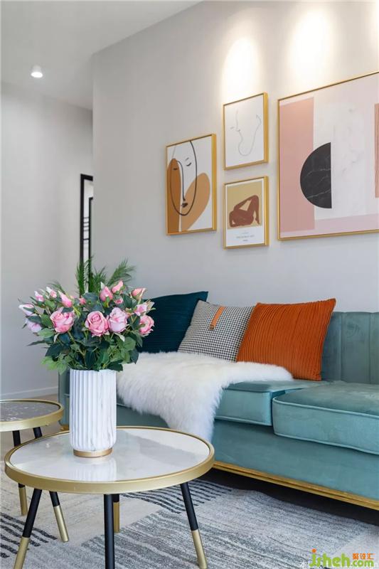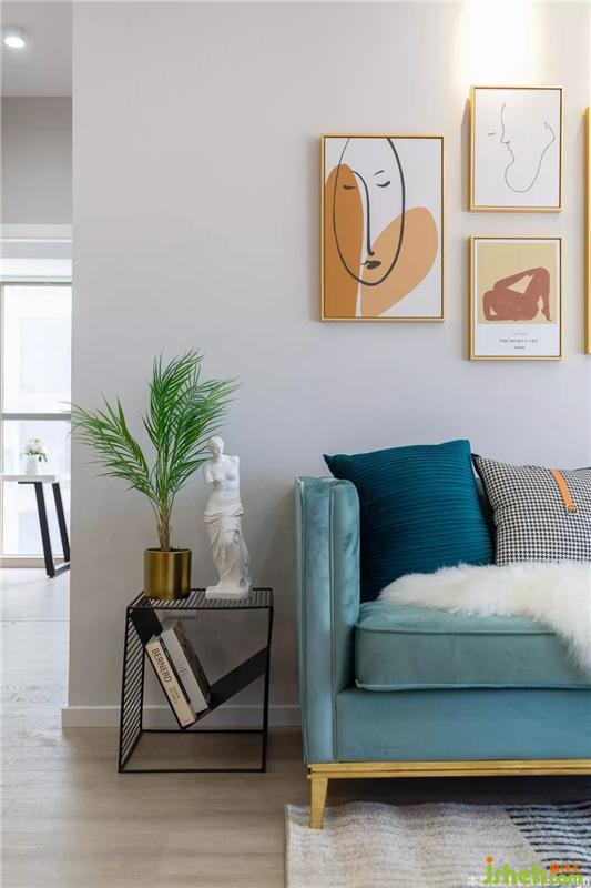 薄荷綠的三人沙發(fā),加上色彩多樣的抱枕,讓客廳看起來不至于枯燥乏味。粉色的單人沙發(fā)是可以隨意換位置的,放在客廳就縮在沙發(fā)上煲劇,也可以放在玄關(guān)來個對鏡拍。