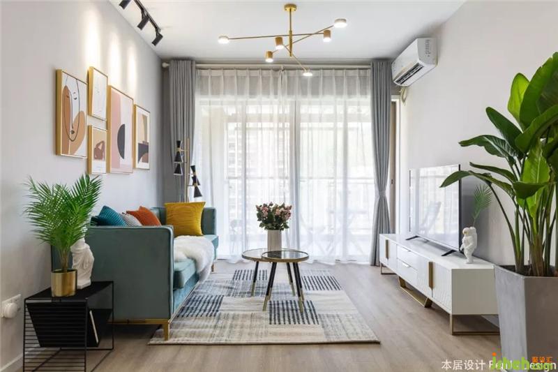 落地窗保證了充足的采光,早晨陽光透過白色的窗紗灑進來,愜意十足。北歐風的圓形茶幾,簡約又不占地方,沙發(fā)旁的放上一盆綠植加以點綴。室內(nèi)設(shè)計師