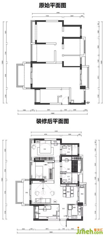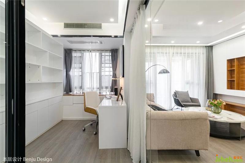 在戶型設(shè)計(jì)方面,這次并沒有太大的改動,只是將客廳與書房之間的隔墻打掉,直接改成了玻璃隔斷,增加了整個(gè)空間的通透感。室內(nèi)設(shè)計(jì)師